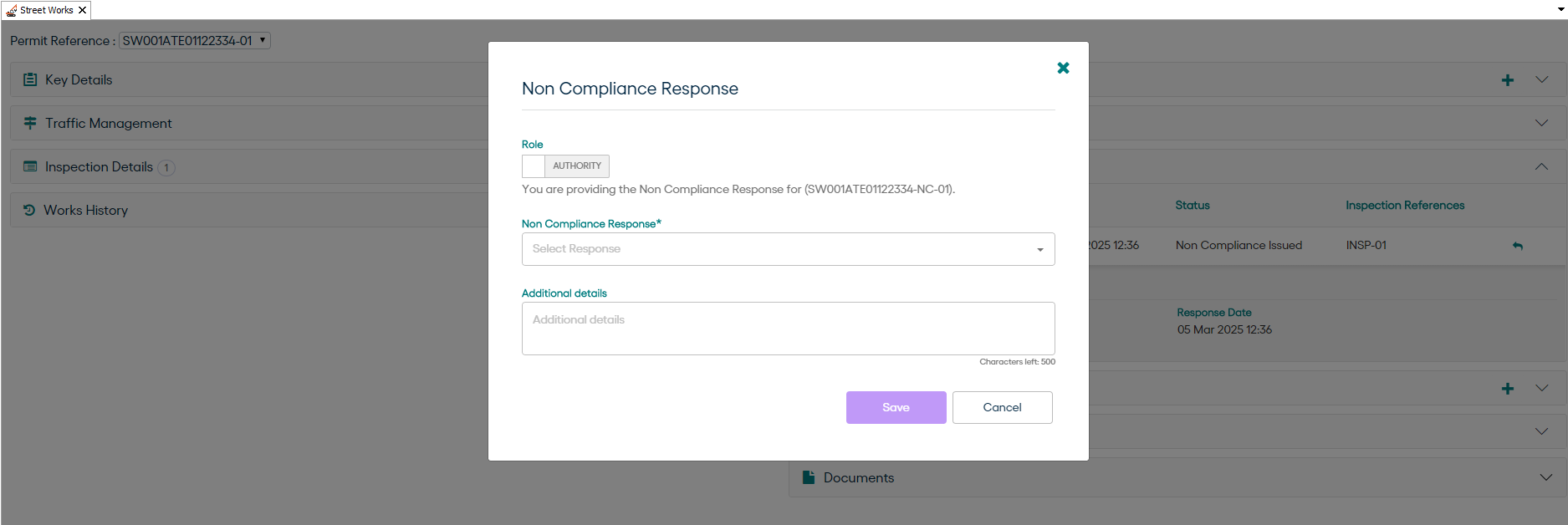 Failed Inspections creates a non compliance (with a unique reference) in Street Manager. Whenever an Inspection is issued by Highway Authority and it reaches to Street Manager, it decides if a Non Compliance can be created. Thereby imported to Confirm as Notice Type 'Non Compliance Issued'.