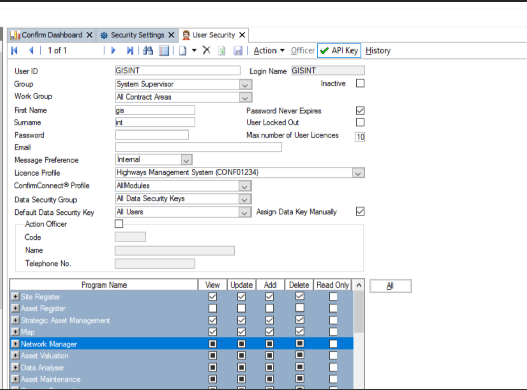 Each user who needs access to GIS 2-Way Integration mappings must have the appropriate permissions. After the tenant is enabled for GIS integration,any individual requiring access to the GIS service must have the(GIS Mapping setting)enabled under Confirm User security screen >>System Administration>>System configuration