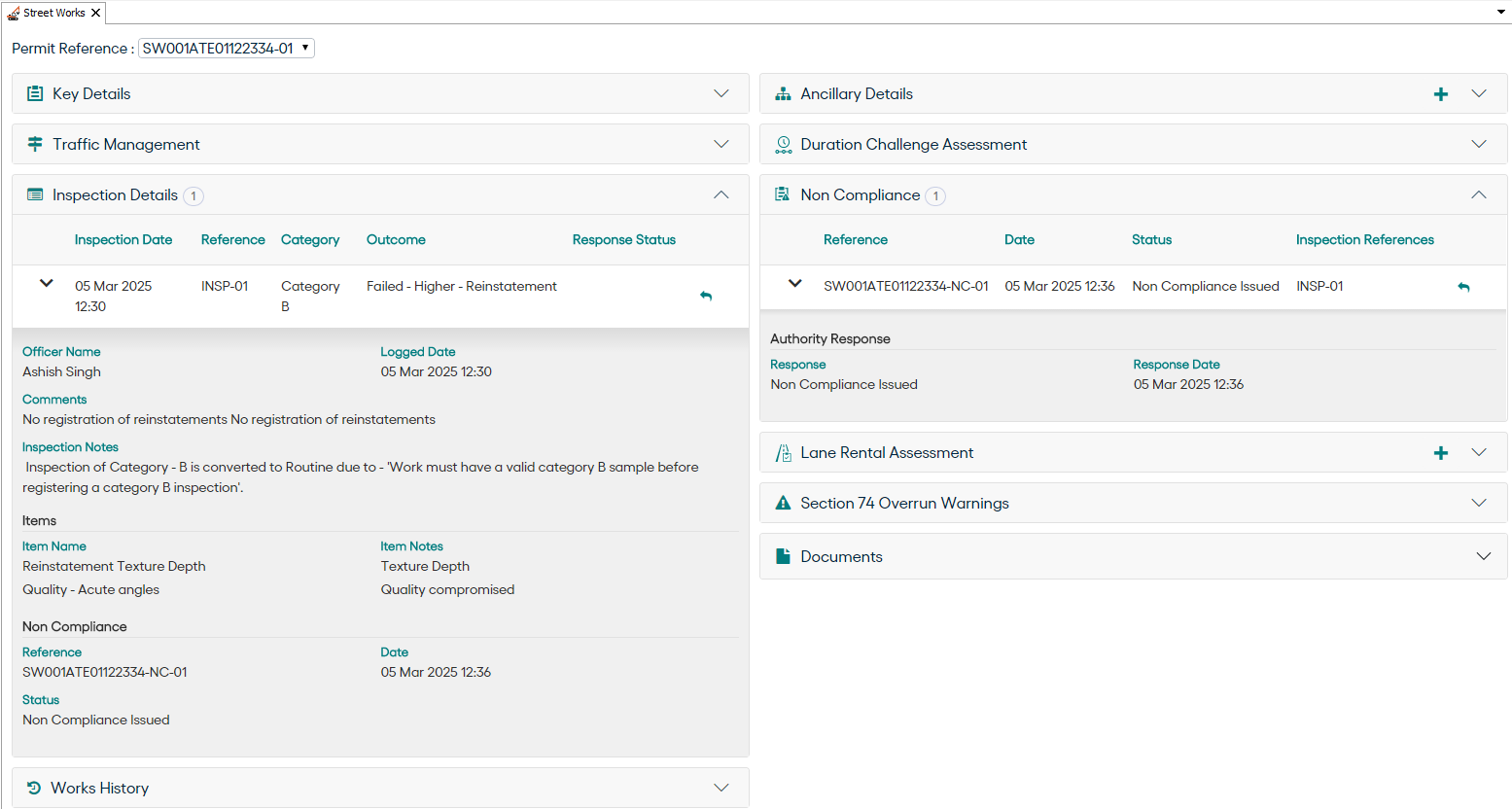 Failed Inspections creates a non compliance (with a unique reference) in Street Manager. Whenever an Inspection is issued by Highway Authority and it reaches to Street Manager, it decides if a Non Compliance can be created. Thereby imported to Confirm as Notice Type 'Non Compliance Issued'.